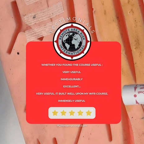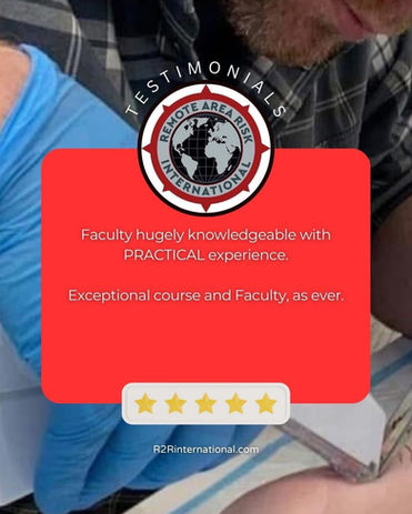 Previously undertaken wound care training with: UK army, US & UK FRS, NHS Ambulance Service. R2Ri course was : Better delivery, expertly delivered detail but in simple language and context..